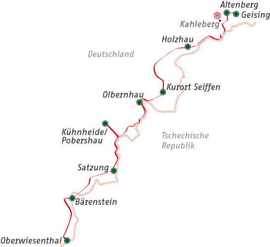 Individuelle Abreise mit dem Bus oder der Bahn. Alternativ bieten wir auch einen Transferservice zurück zum Ausgangsort der Wanderung nach Altenberg an.